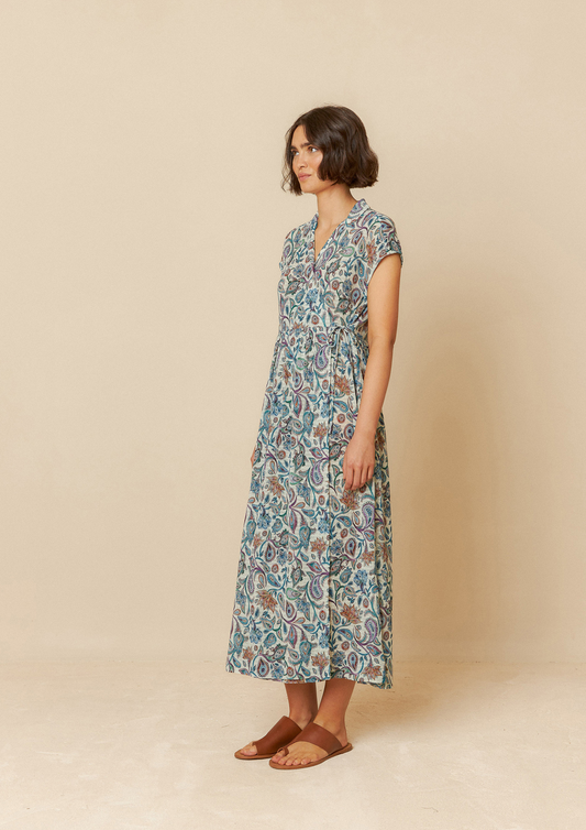 Indi & Cold Paisley Crossover Multicolour 100% Organic Cotton Woven Dress