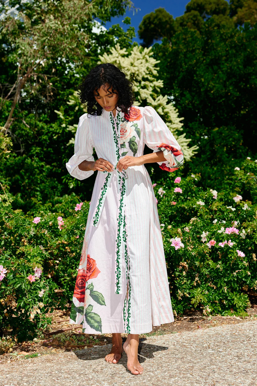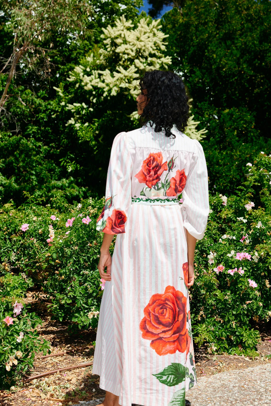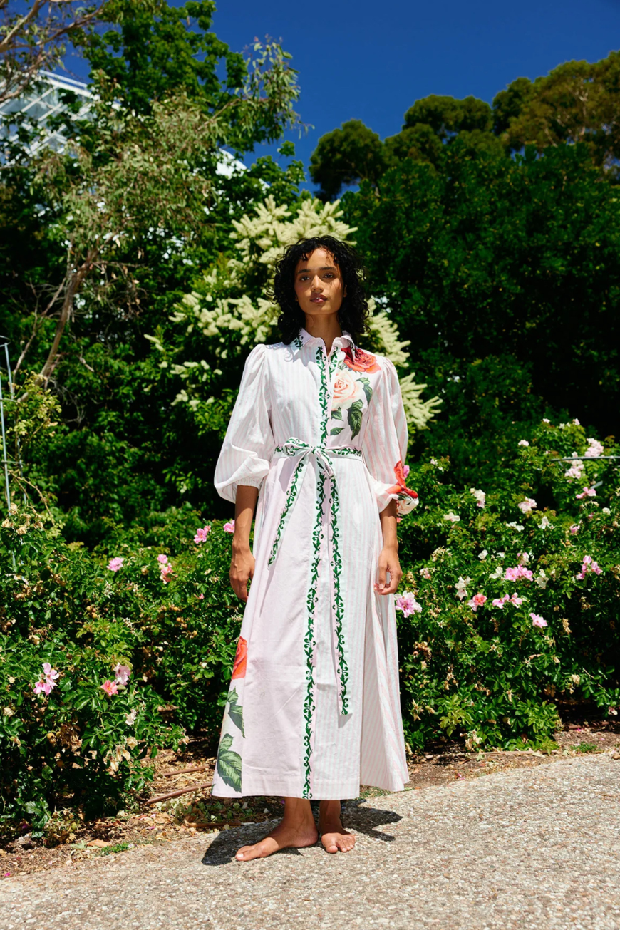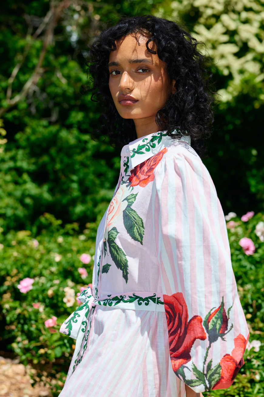 The Lucille Dress is a relaxed shirtdress in our exclusive Baby Rose Multi print. Crafted with a premium linen cotton blend this dress is timeless and designed for comfort.
