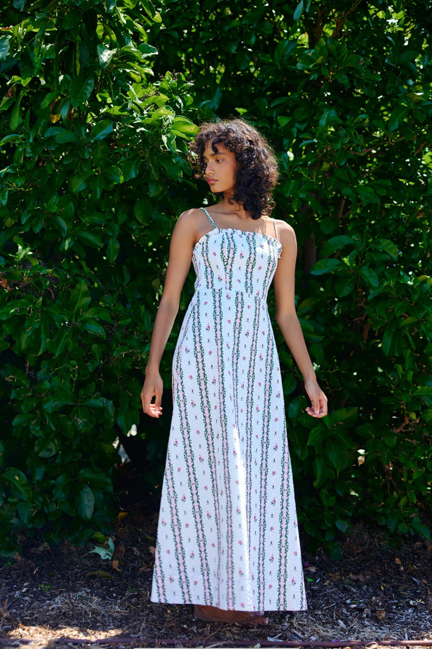 Molly Dress in Antique Rose Stripe is crafted with a heavyweight textured cotton lace.Featuring a softly structured bodice, defined waist seam and A-line skirt, the Molly Dress is flattering and charming.