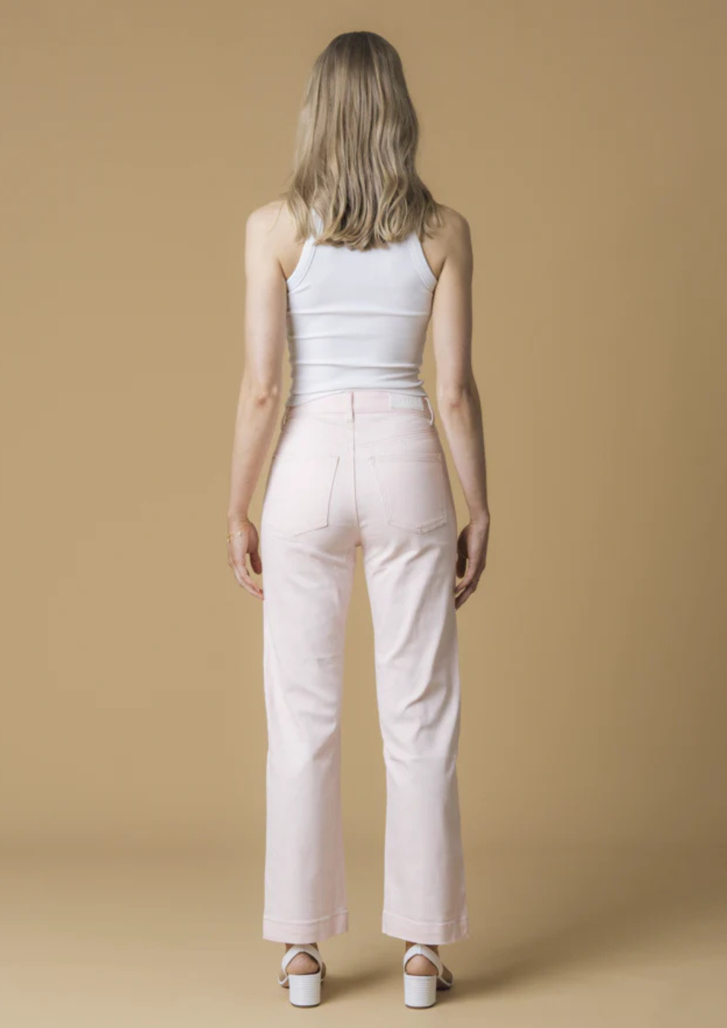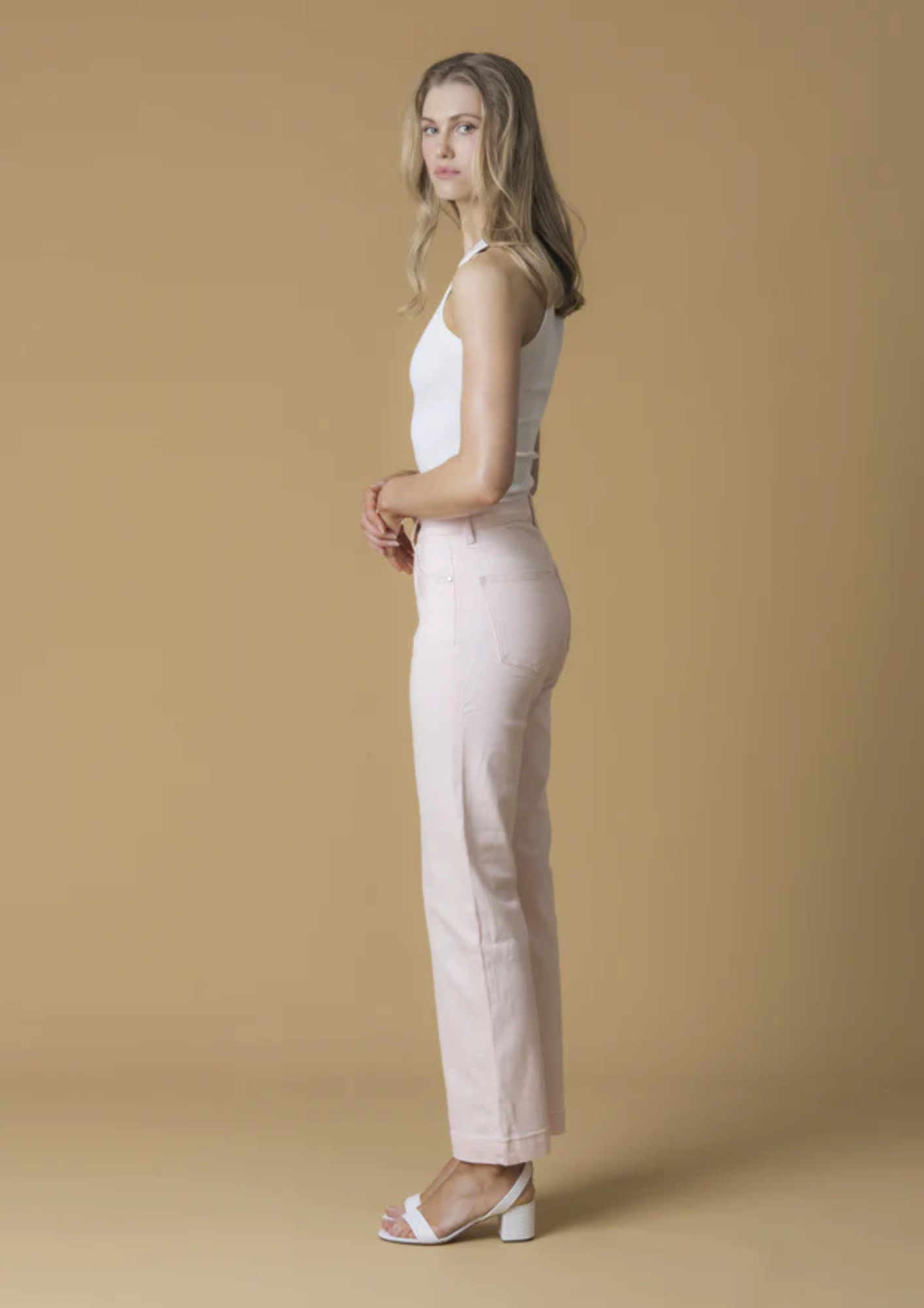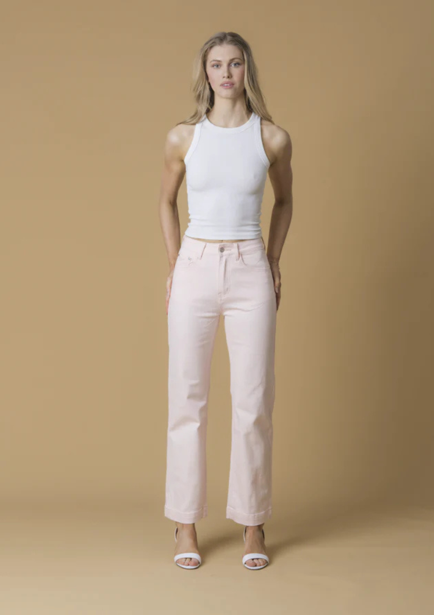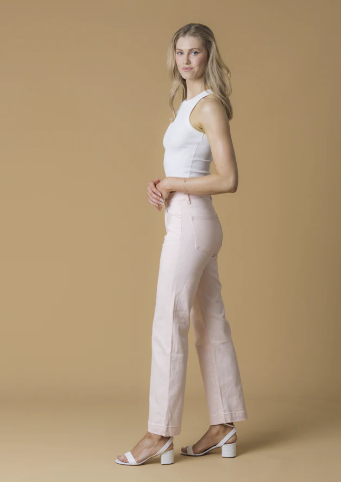 Discover the flattering fit of these blush pink straight-leg jeans from Grace Jean | Bellini. Designed to match your regular size, they provide effortless style and comfort for everyday wear.