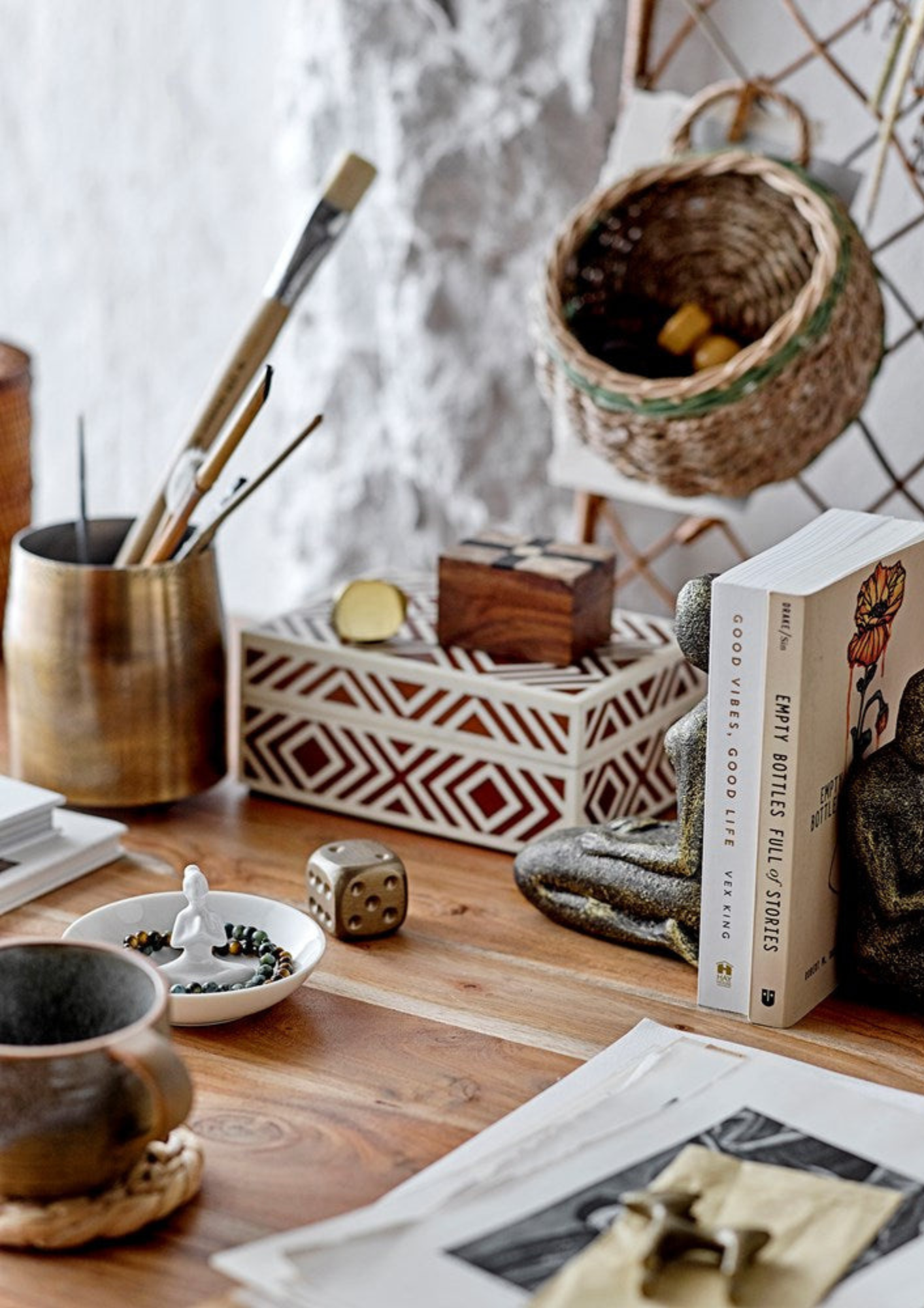The Yara Tray by Bloomingville is made of stoneware in a clean white colour. Decorated with a little yoga woman in the middle. Perfect for storing your jewellery on your bedside table or on the sink in the bathroom.
