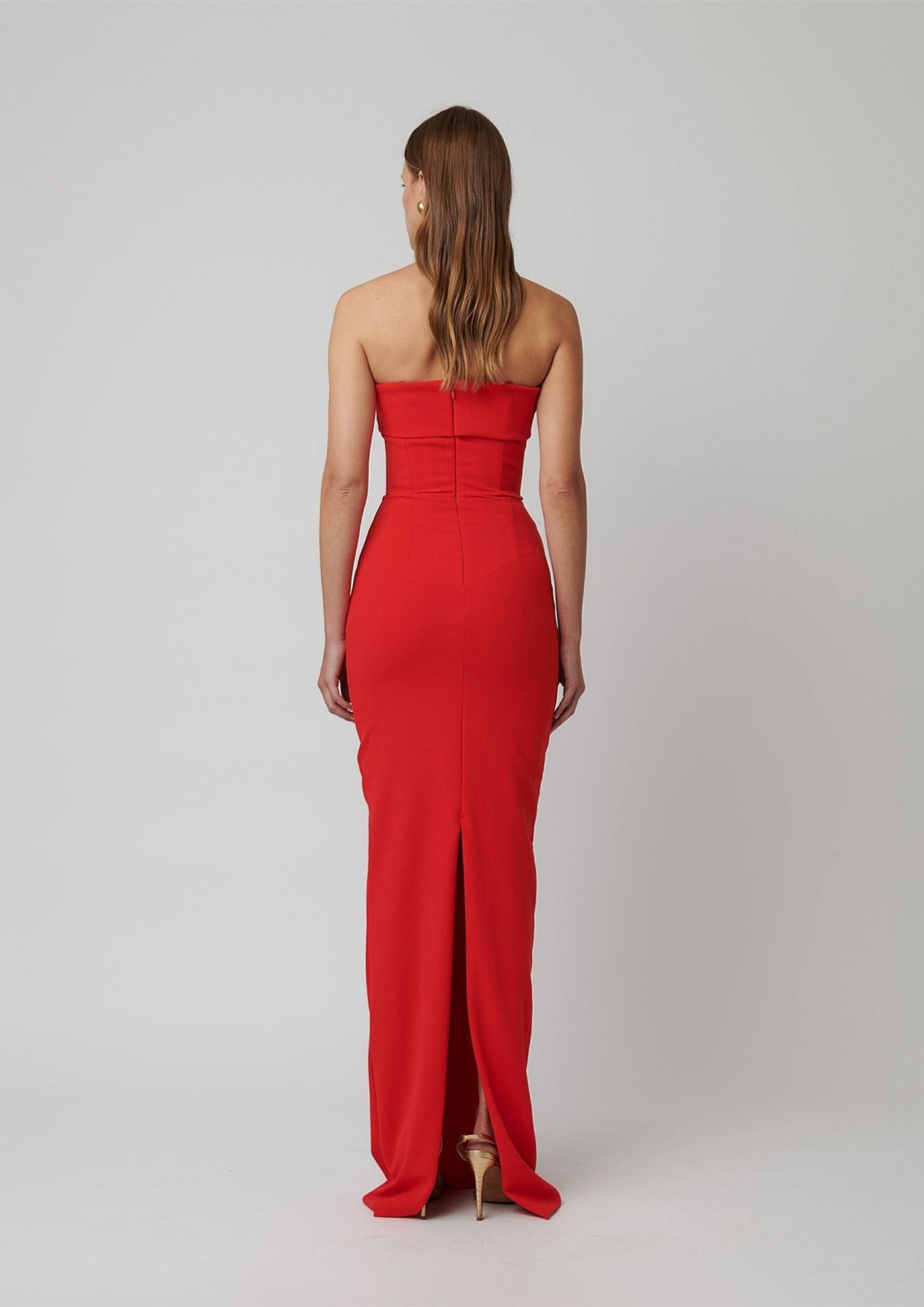 Welcoming the Effie Kats Monroe Gown in Red, our special take on a classic silhouette. Featuring a strapless bodice with a fold over detail and a back split for ease of movement, it is the perfect piece for timeless elegance. Designed with a cinched waist and a draped silhouette that falls effortlessly on the body. The Monroe Gown is a must-have for a well curated wardrobe.