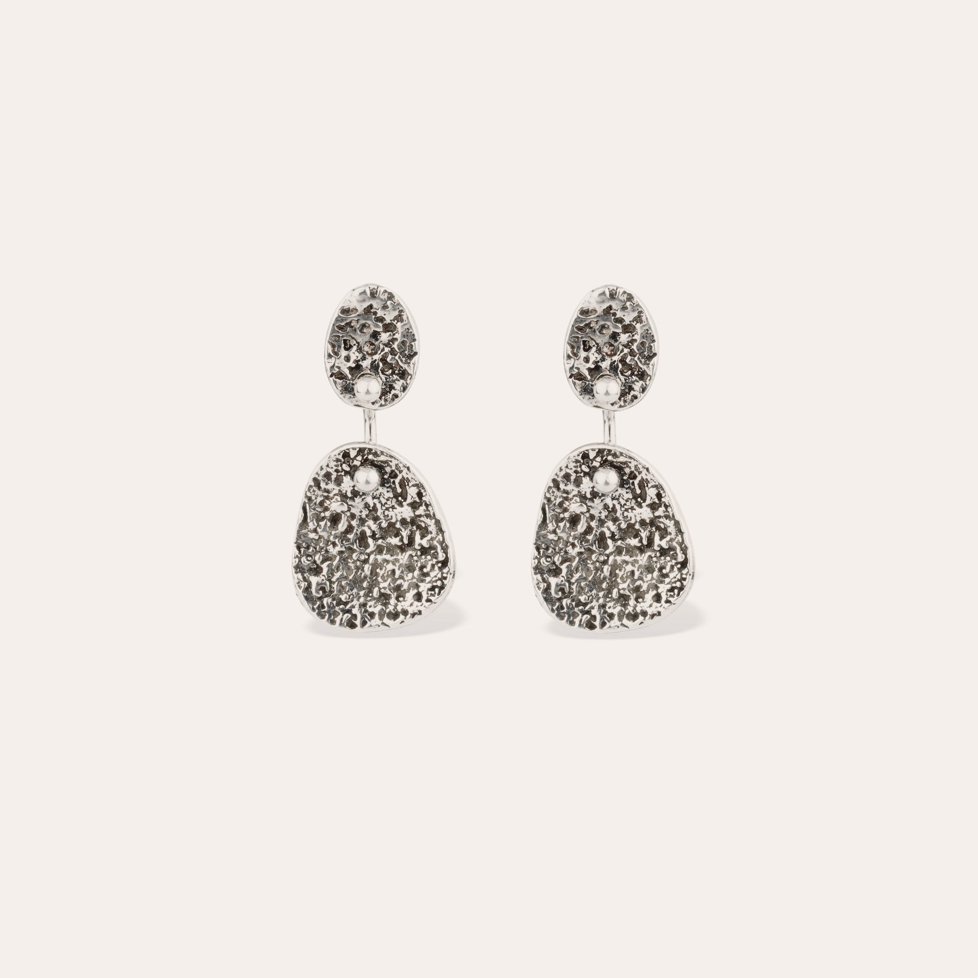 The Eclipse earrings, inspired by the surface of the moon, composed of fine links and irregular rounds delicately hammered by a craftsman. A collection of singular shapes where irregularity creates charm.