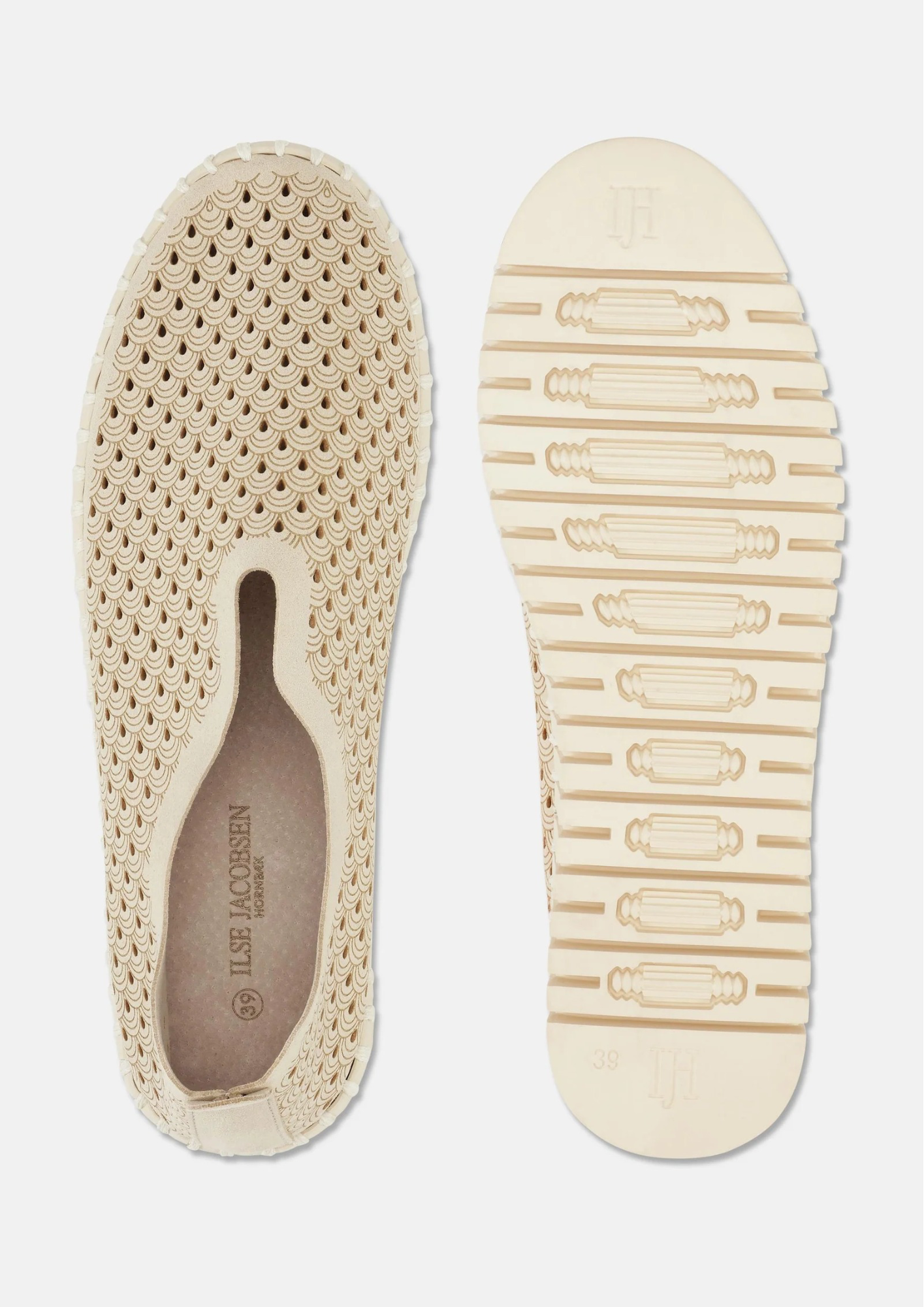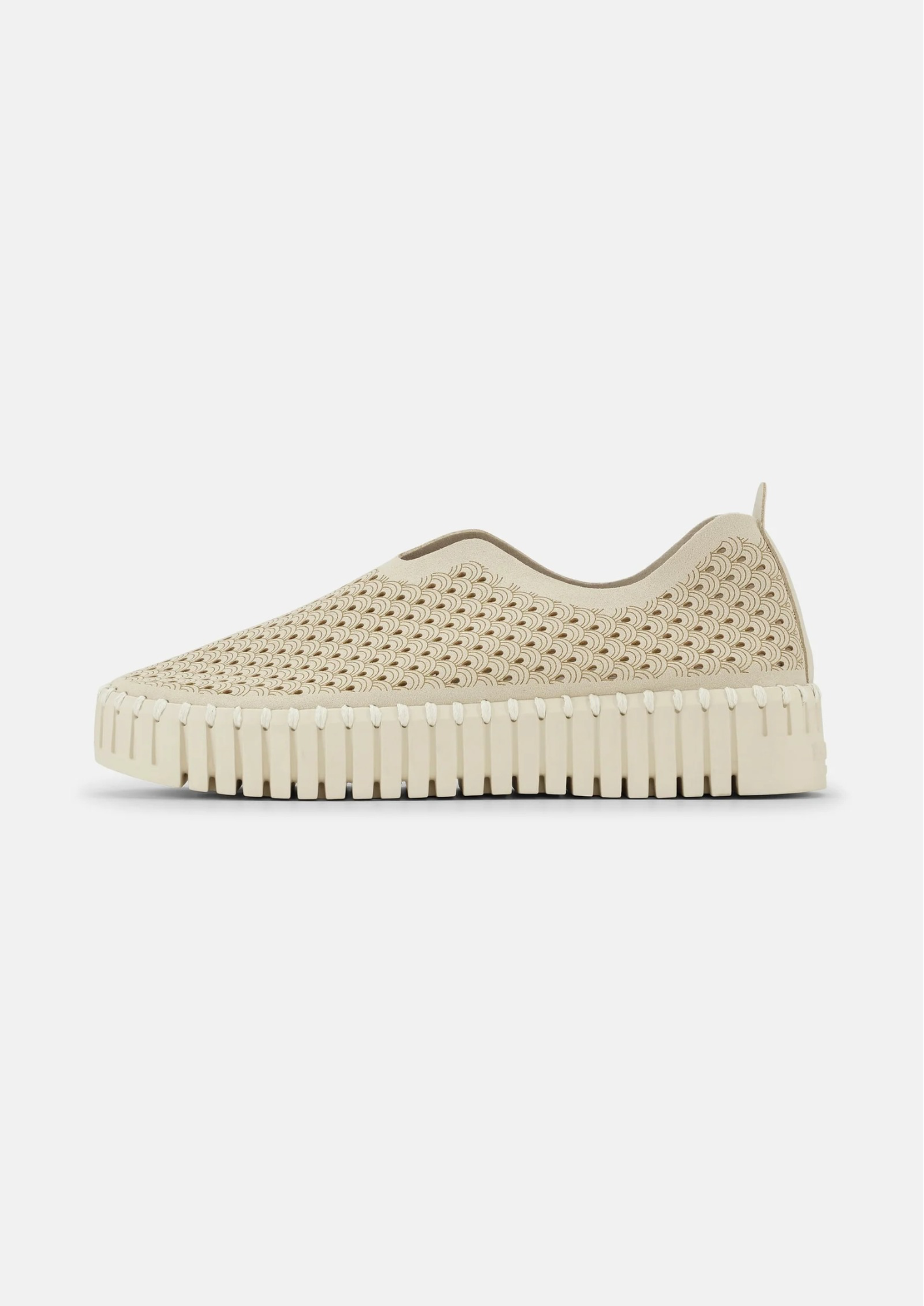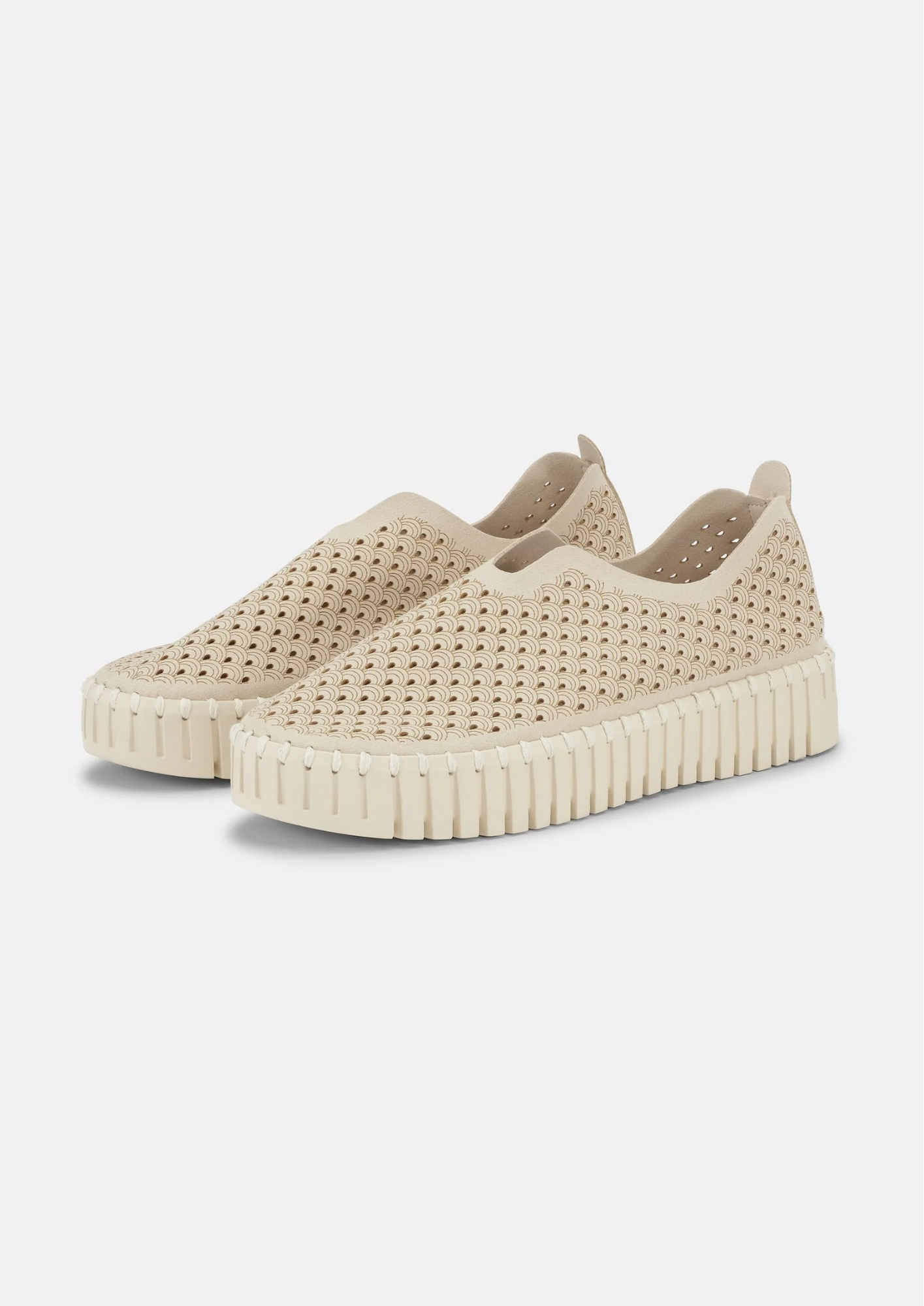Made of recycled microfibre the breathable small laser cut pattern, makes it the perfect travel shoe, the inner sole has padding & support ensuring great comfort. The innersole can also be removed & the shoes can be washed in the washing machine. The tulip Fashion platform sole is made of rubber.