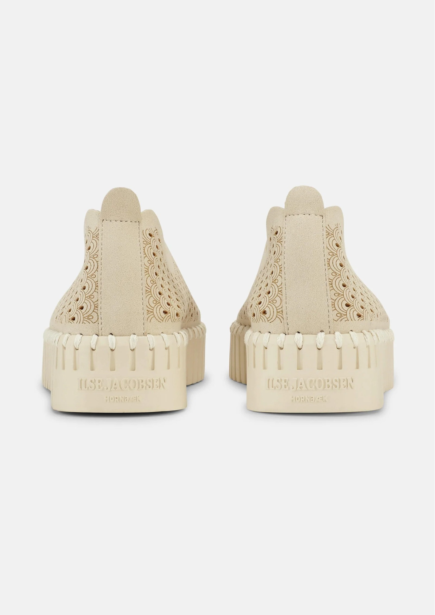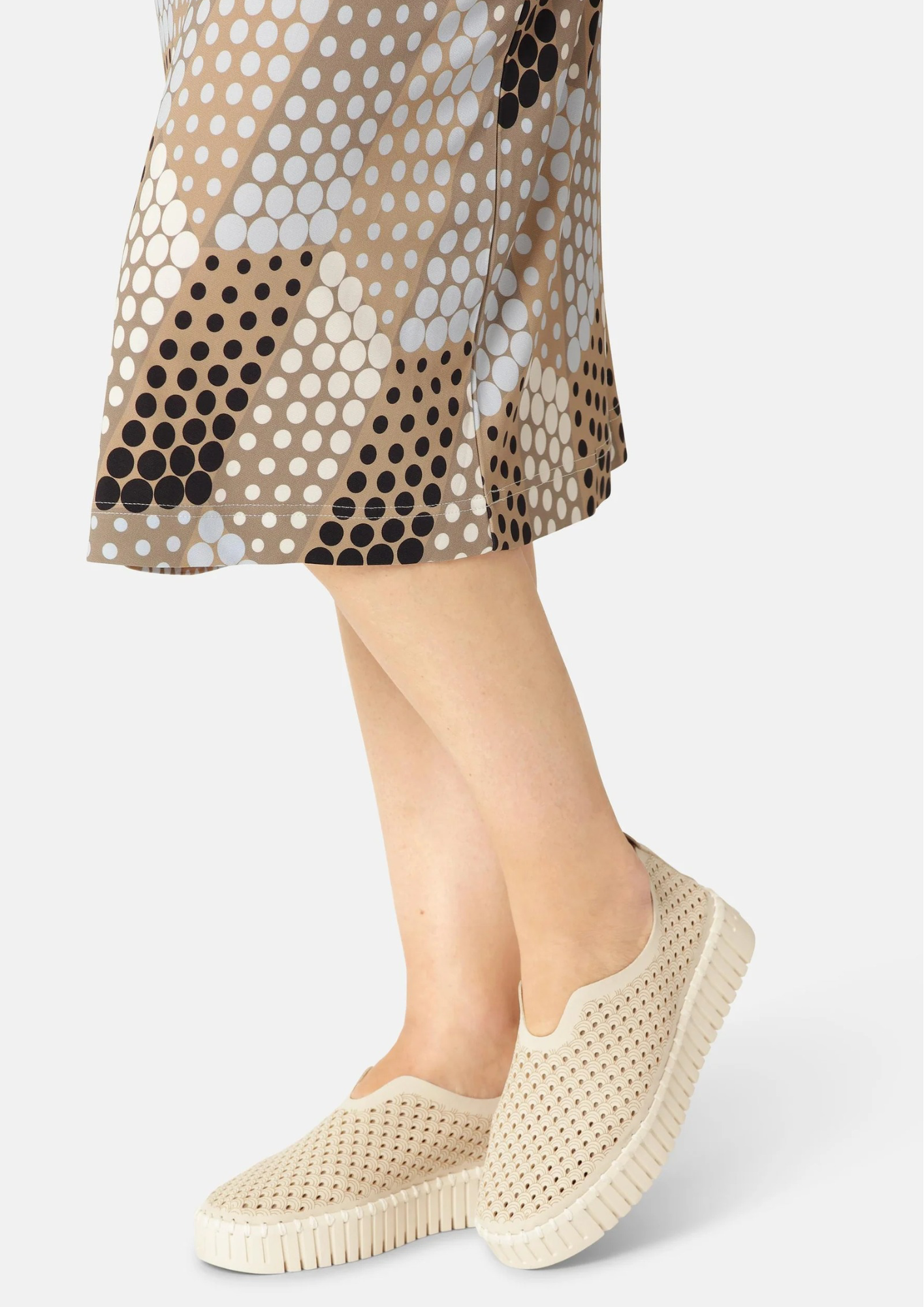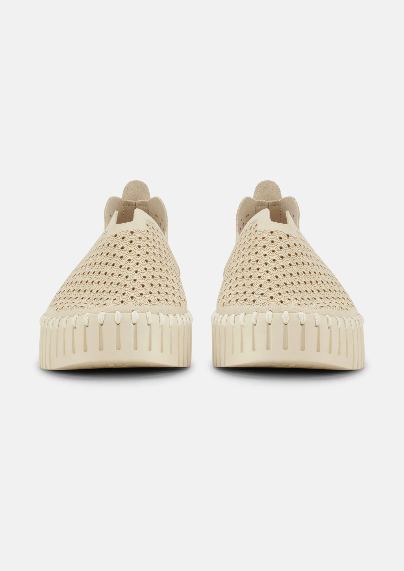 Made of recycled microfibre the breathable small laser cut pattern, makes it the perfect travel shoe, the inner sole has padding & support ensuring great comfort. The innersole can also be removed & the shoes can be washed in the washing machine. The tulip Fashion platform sole is made of rubber.