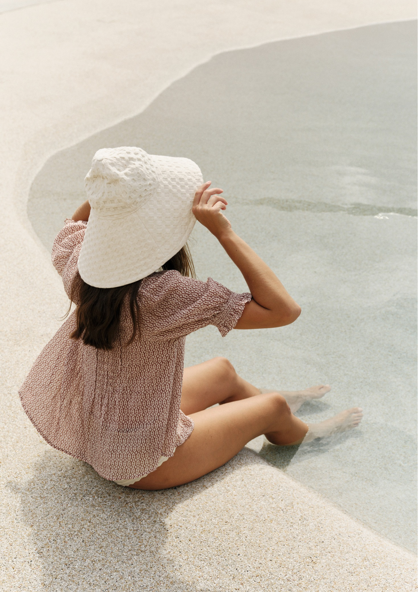 • Geometric print in organic cotton gauze, a lightweight and slightly transparent fabric.