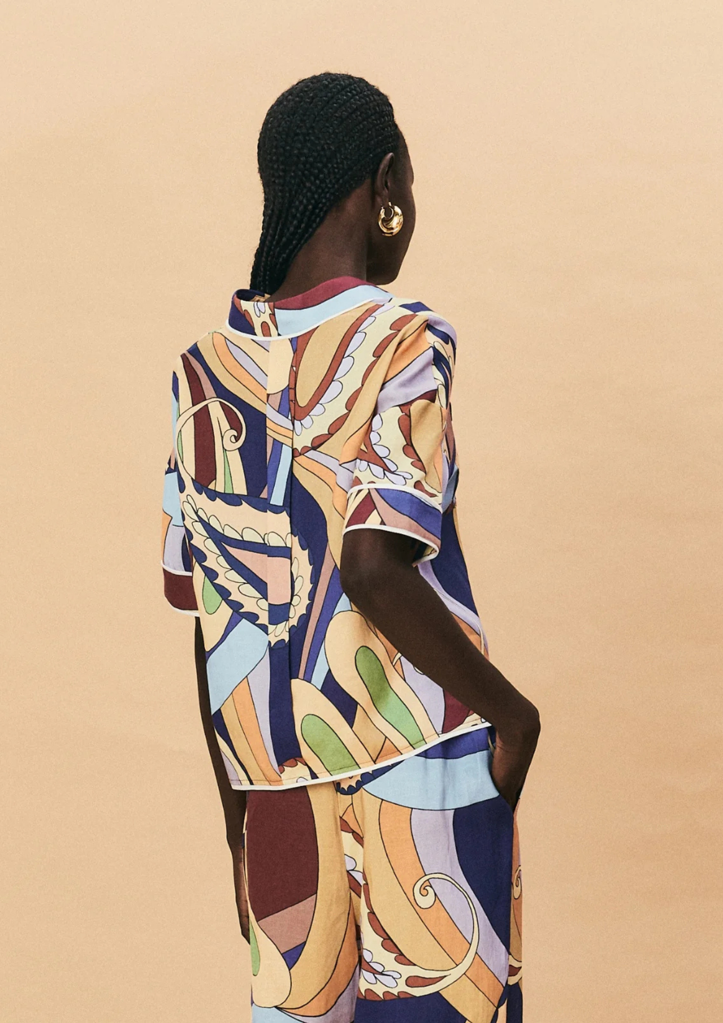 The Dijon Shirt by La Maise Studiobrings a retro-inspired burst of colour to your summer wardrobe. Crafted from a lightweight tencel–linen blend, this short-sleeve shirt showcases a bold all-over paisley print in warm, earthy tones. A crisp piped trim highlights the collar, placket, and pocket edges, lending definition and refinement to the relaxed silhouette.
