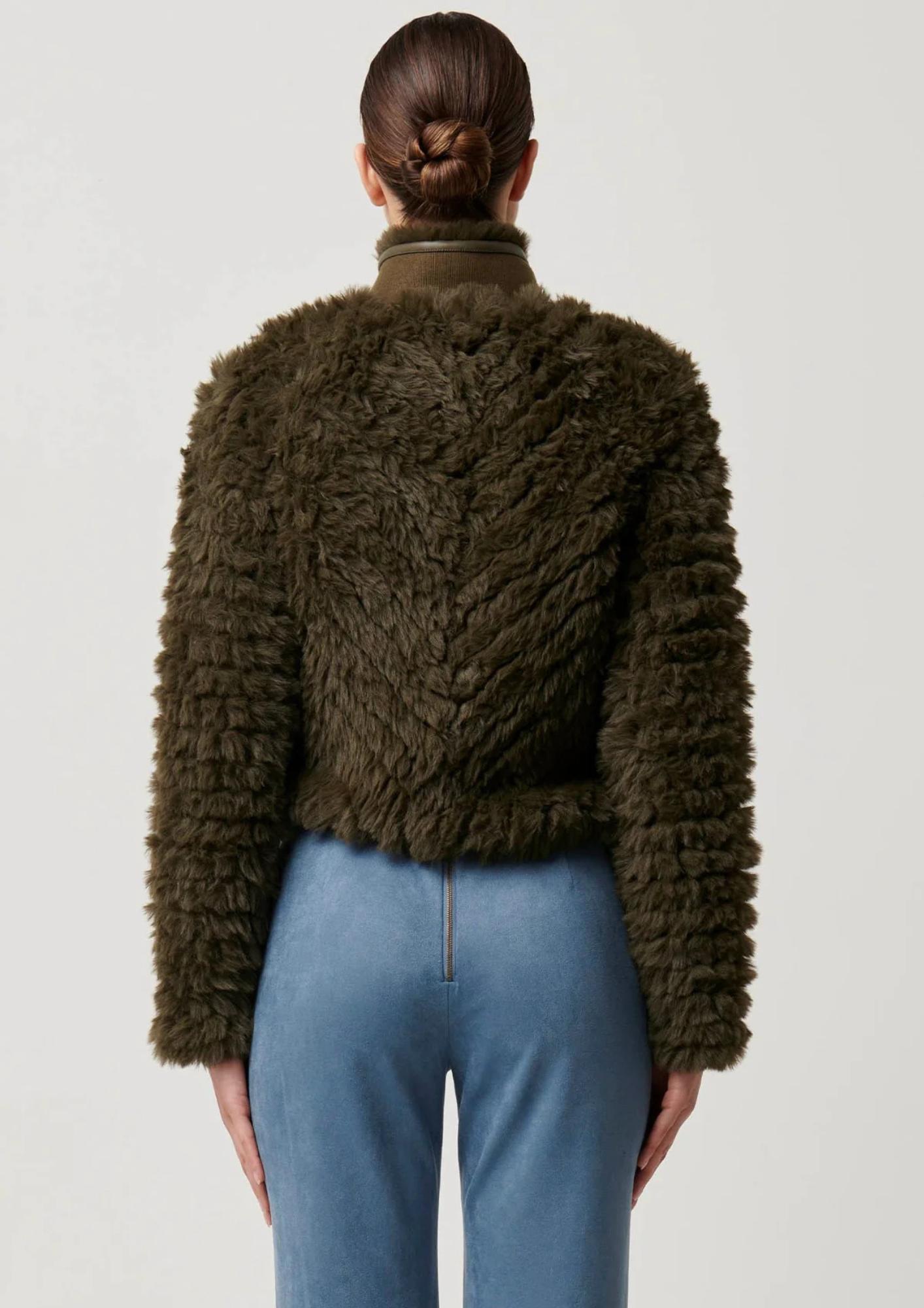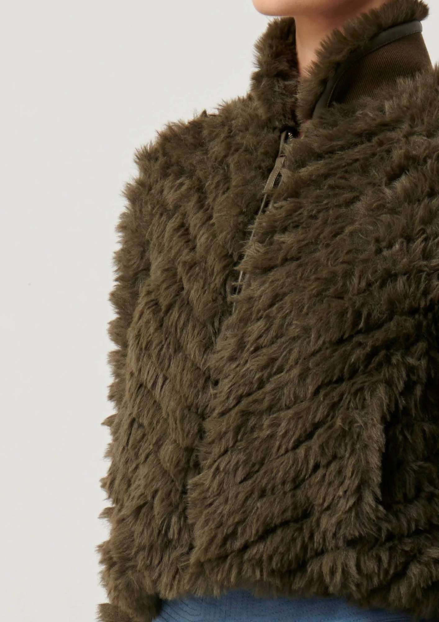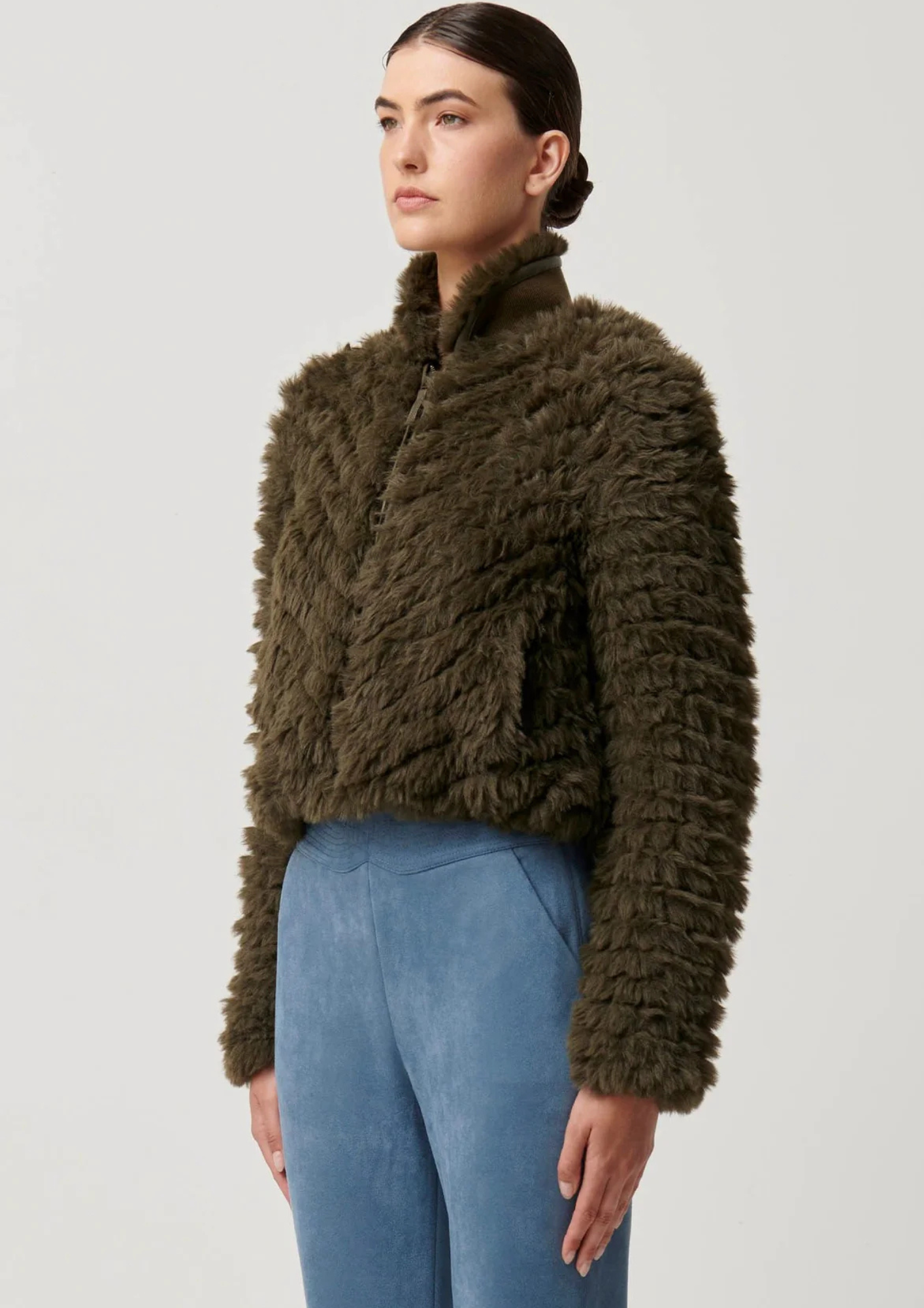 Once Was Sybil Chevron Faux Fur Rib Collar Bomber - Moss