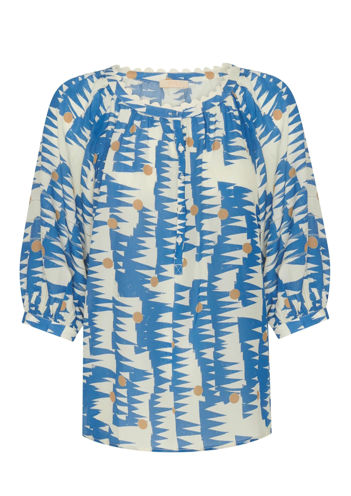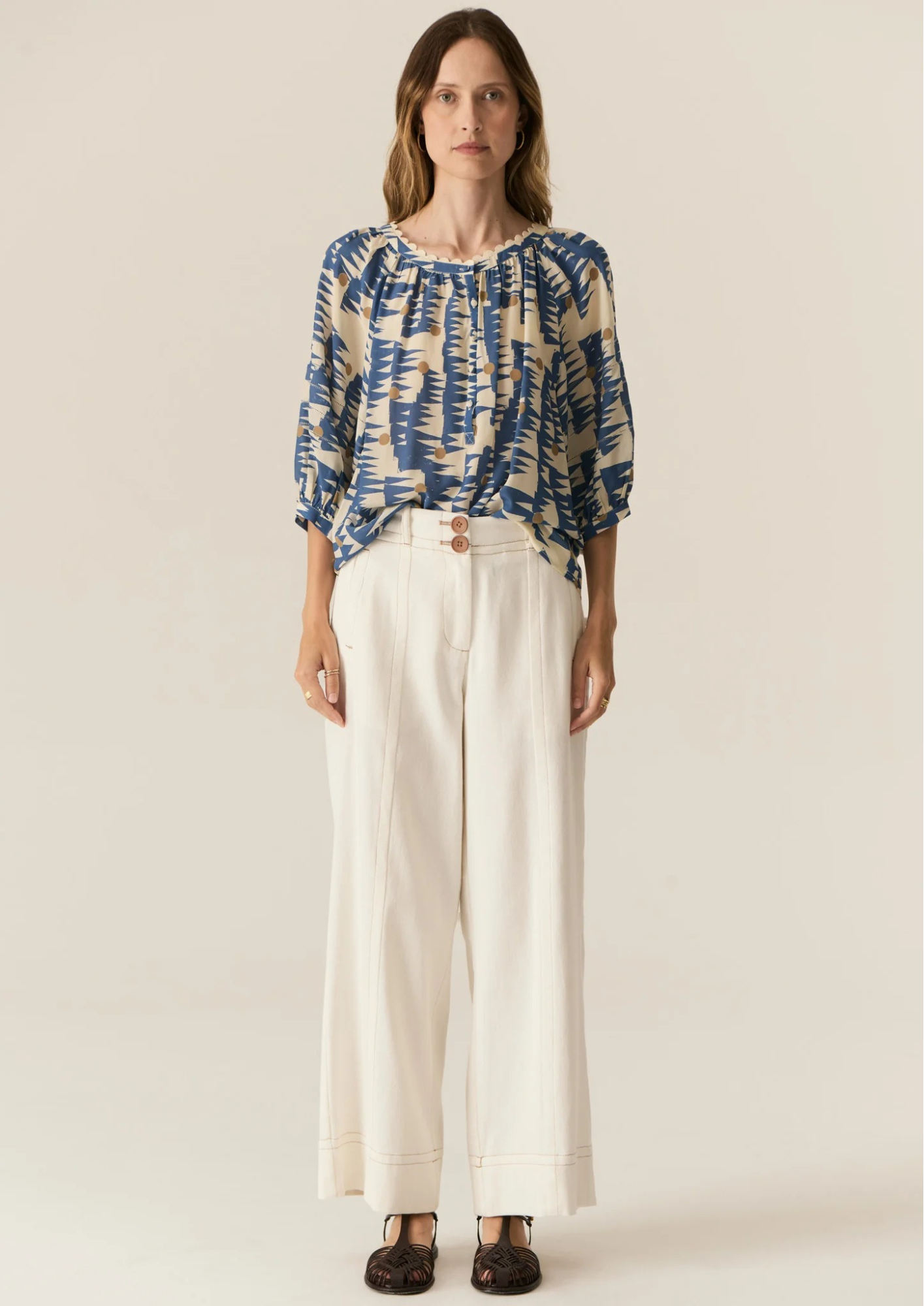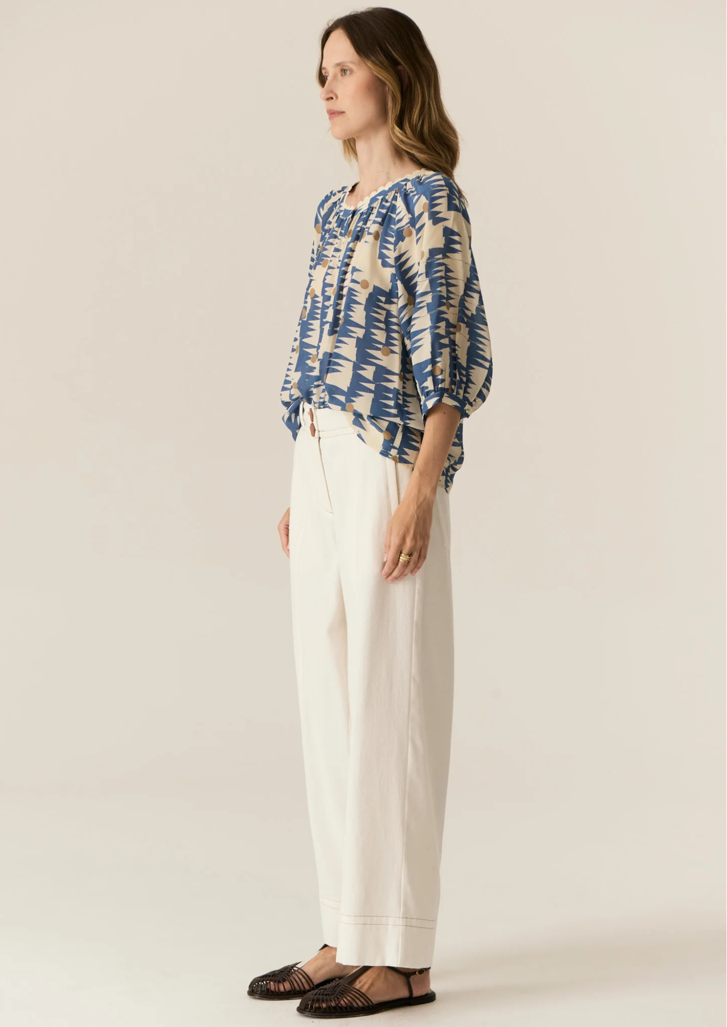 -Round neckline with scallop rick rack edge - tiny gathers under the neckline.